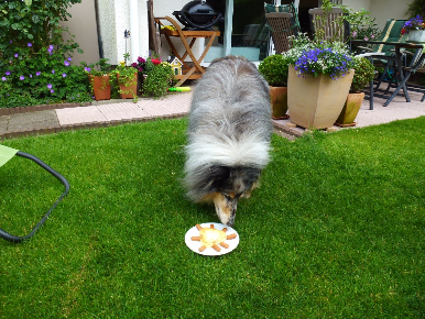 Von seinem lieben Frauchen und Herrchen bekommt Sammy immer eine leckere Geburtstagstorte!