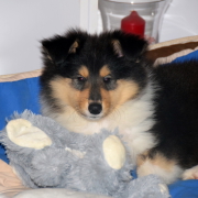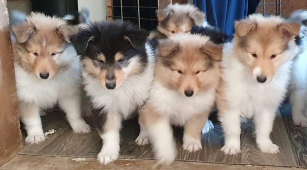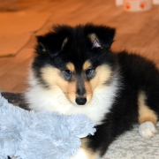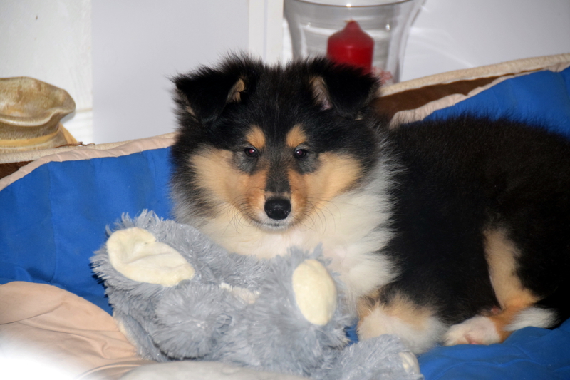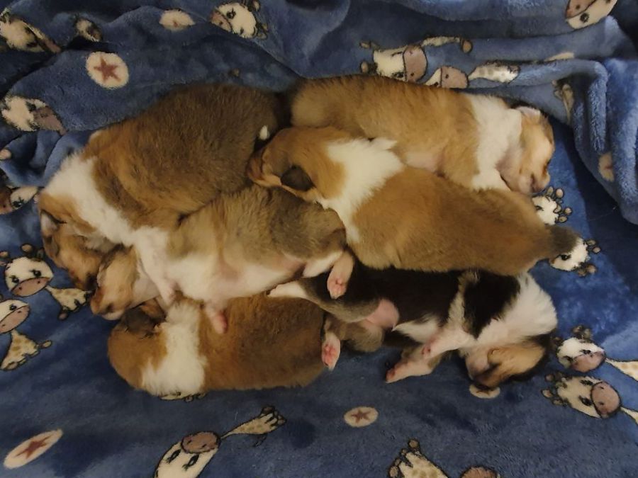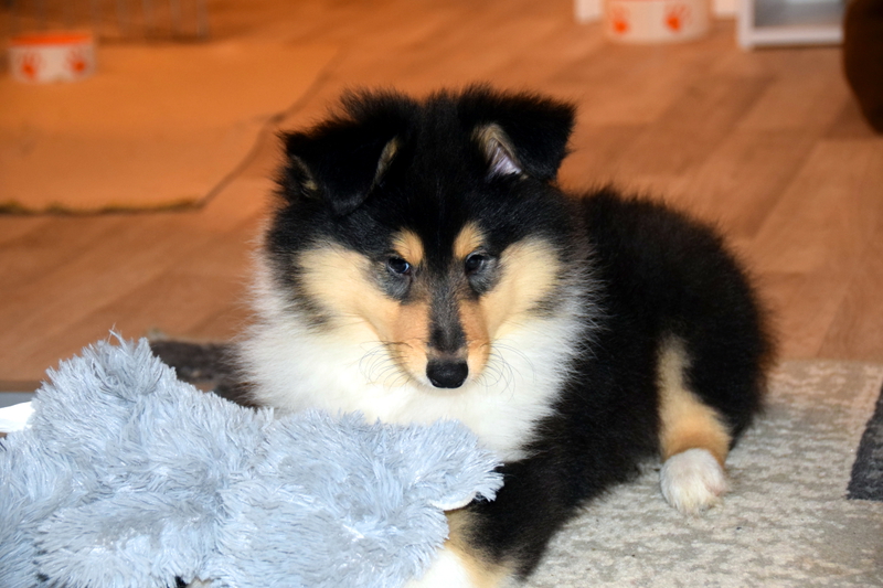 5 sable und 1 trico Welpe waren bei ihr zur Welt gekommen.