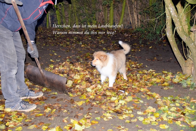 Herrchen wollte das viele Laub in den Hänger schaufeln und Gavenia