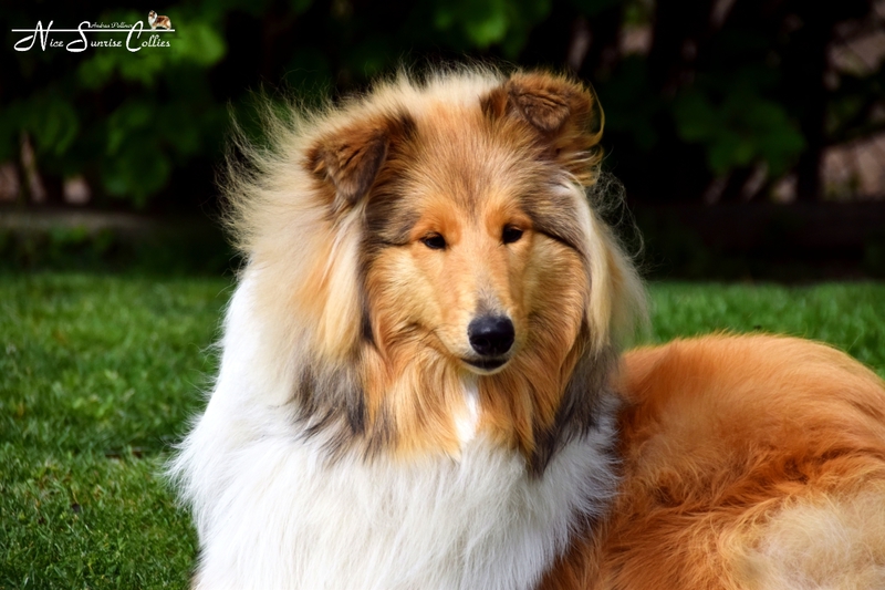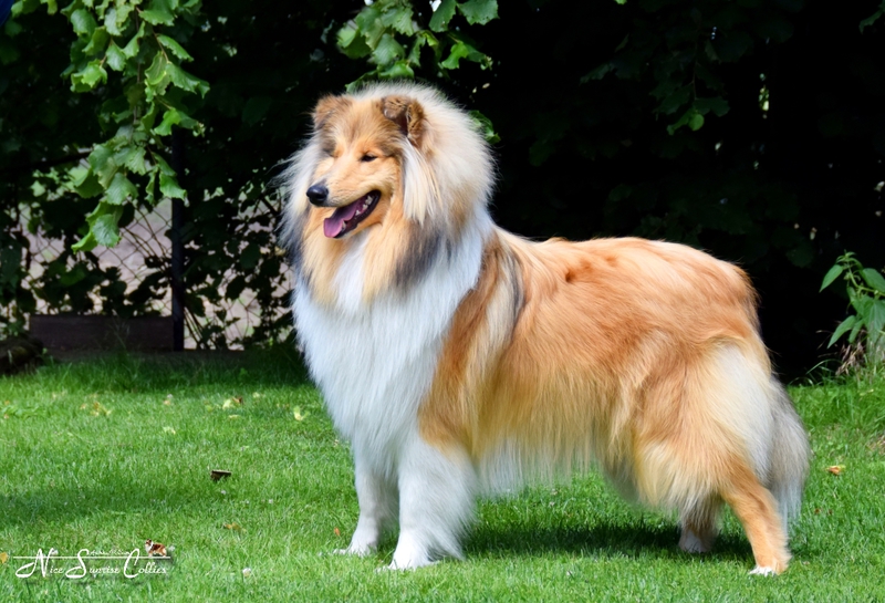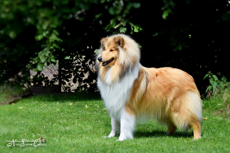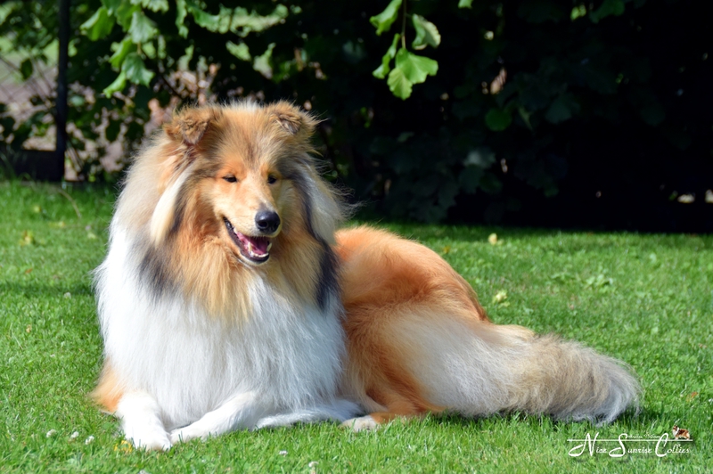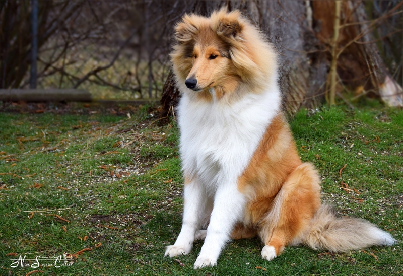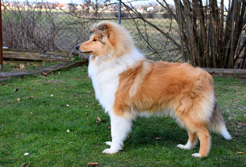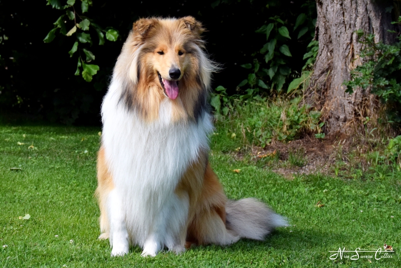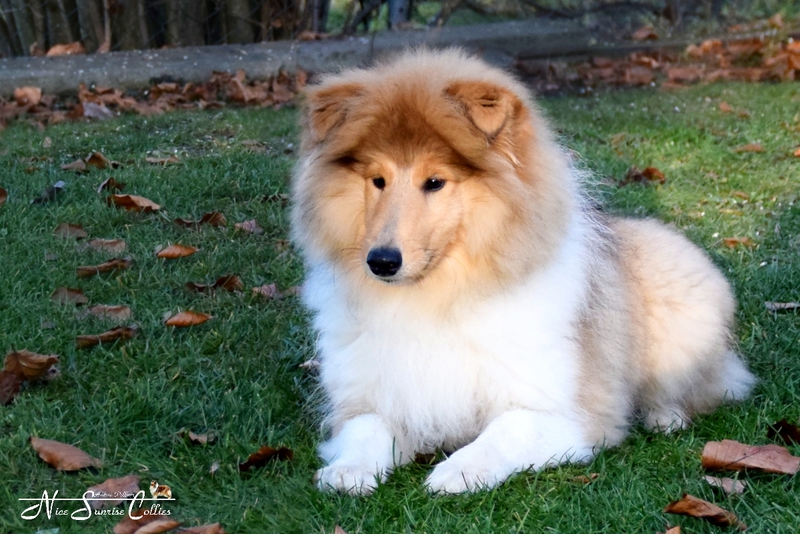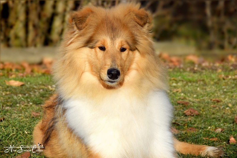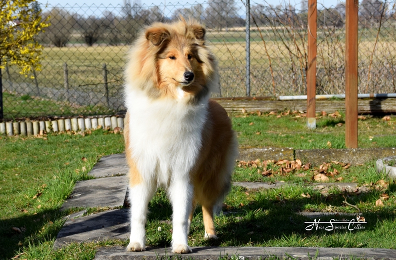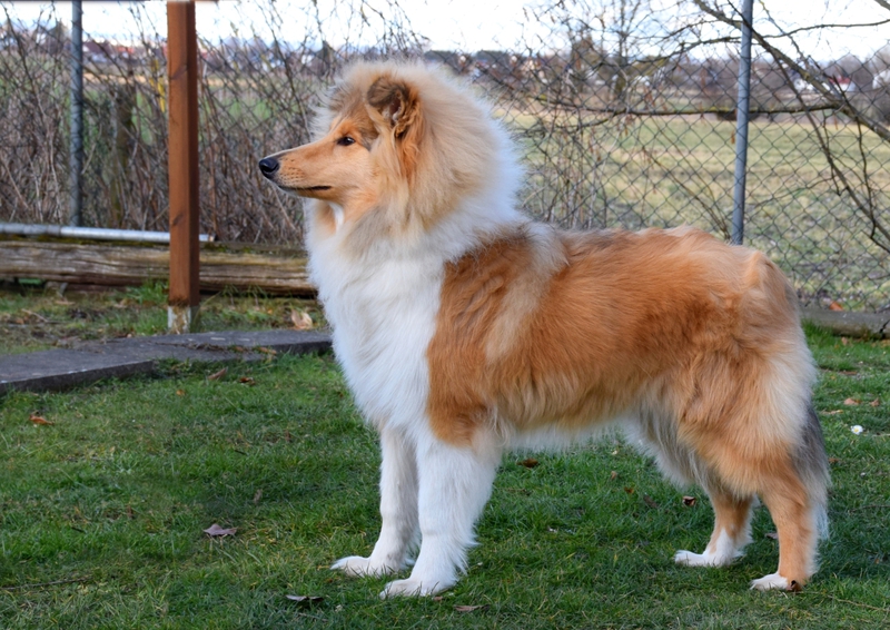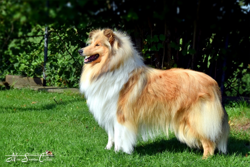 Beide Vorderbeine sind weiß bis hoch und sie hat eine schöne geschlossene Halskrause,