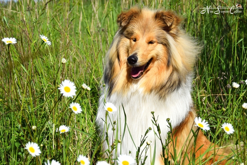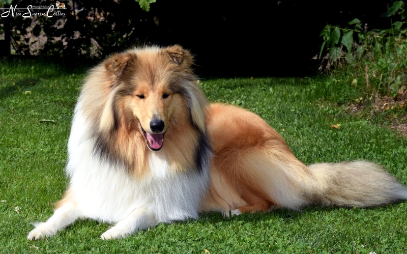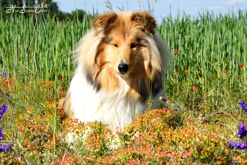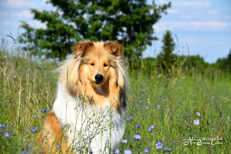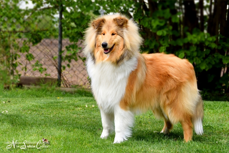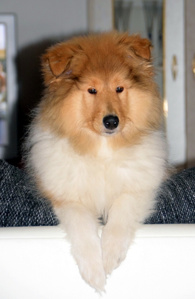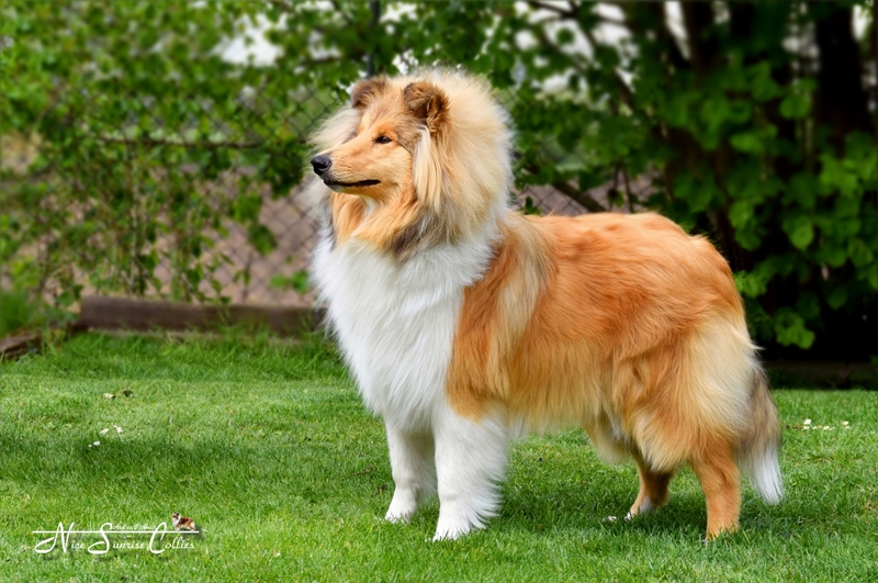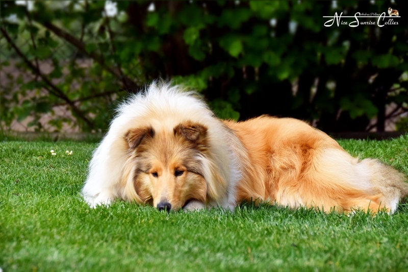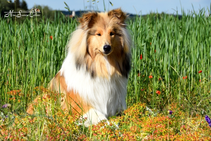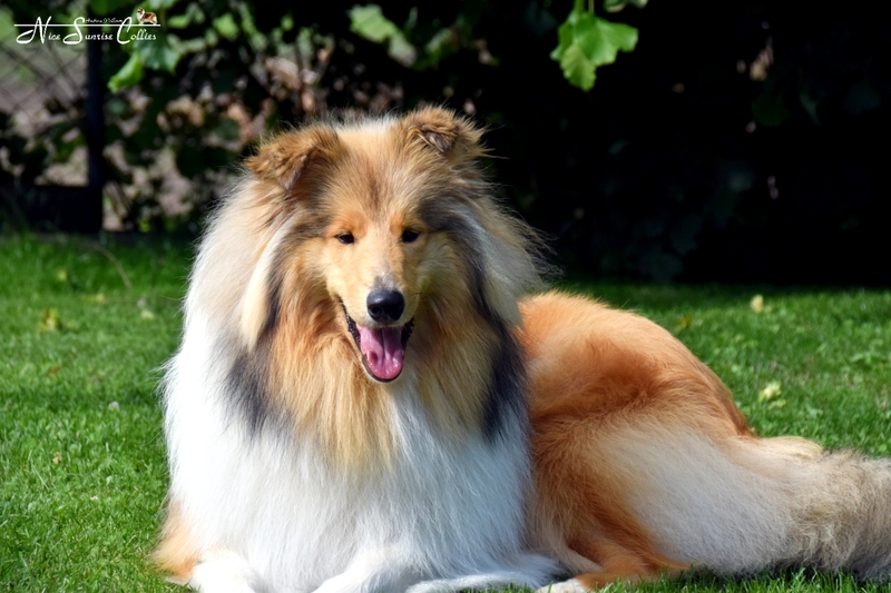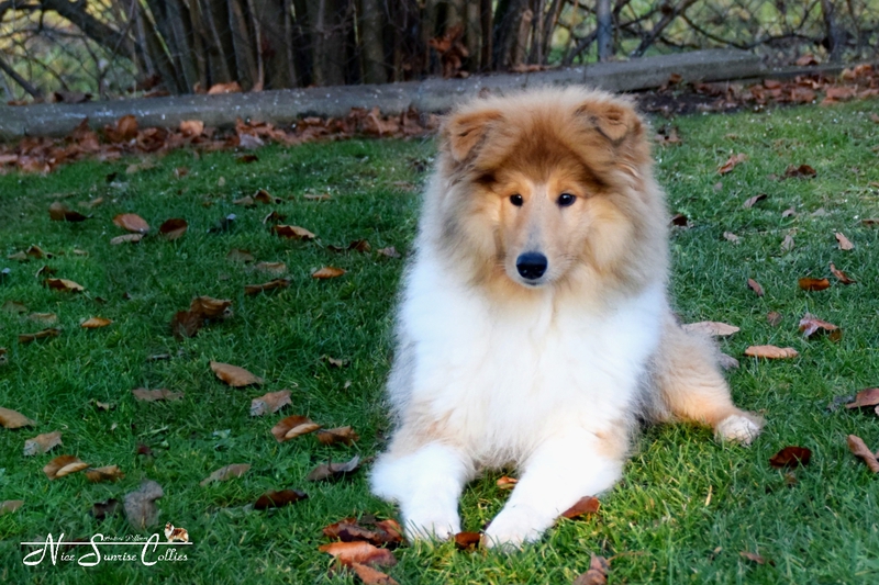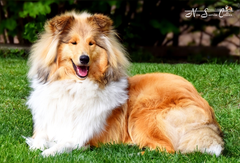 Beide Vorderbeine sind weiß bis hoch und sie hat eine schöne geschlossene Halskrause,