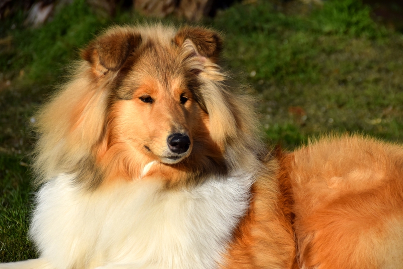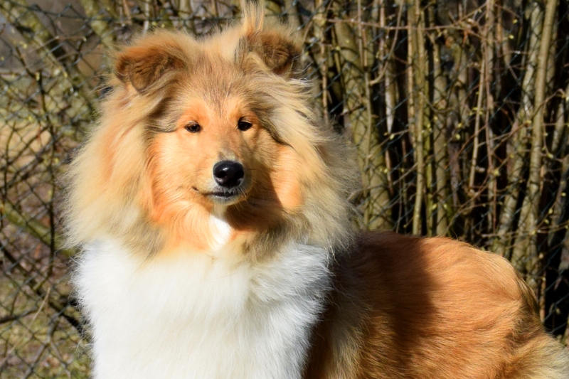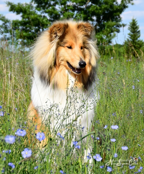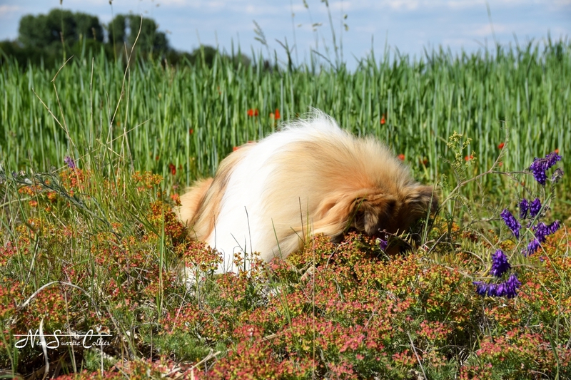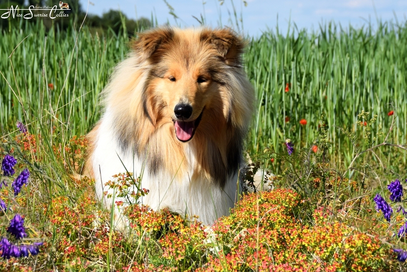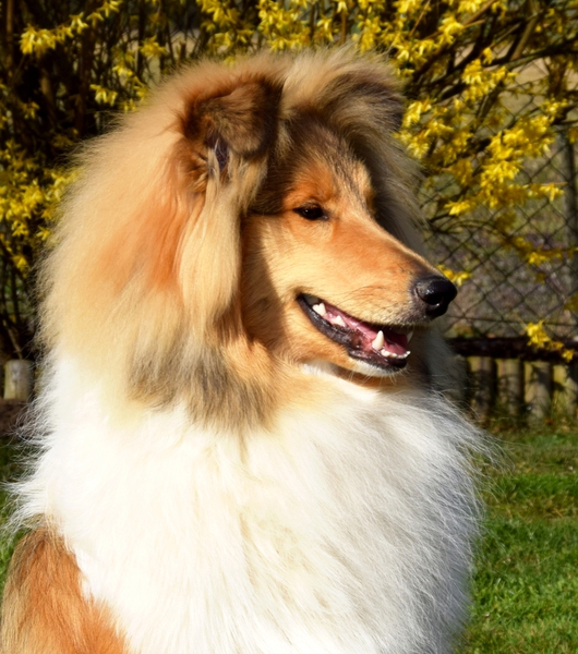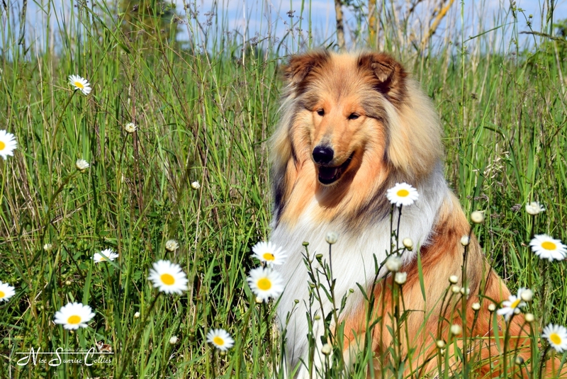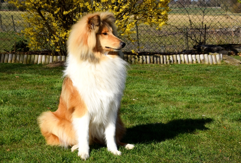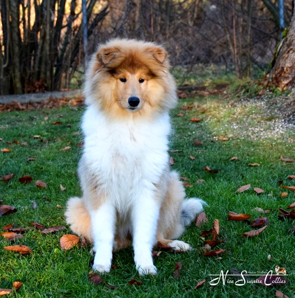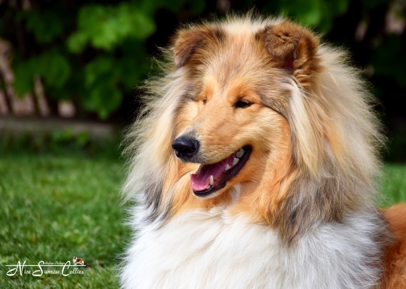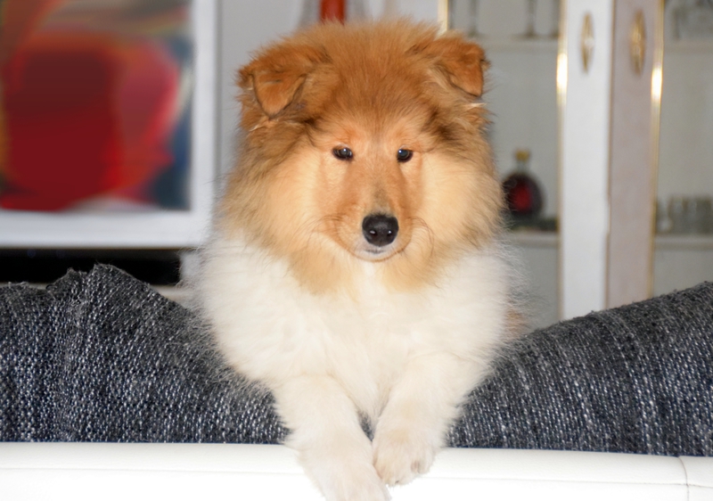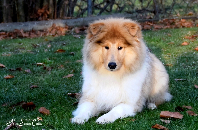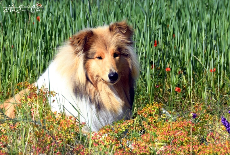 Beide Vorderbeine sind weiß bis hoch und sie hat eine schöne geschlossene Halskrause,